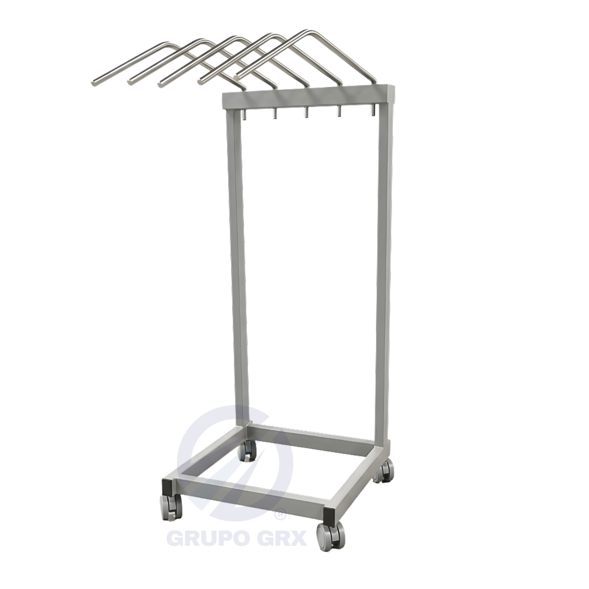 O Suporte Avental Móvel Tipo Cabide para 5 Aventais de Chumbo ou Aventais Plumbíferos da GRX oferece praticidade e qualidade superior. Sua estrutura metálica tubular, tratada e pintada, garante resistência, enquanto os cabides escamoteáveis em aço inoxidável proporcionam durabilidade, resistência à corrosão, fácil limpeza e máxima assepsia.